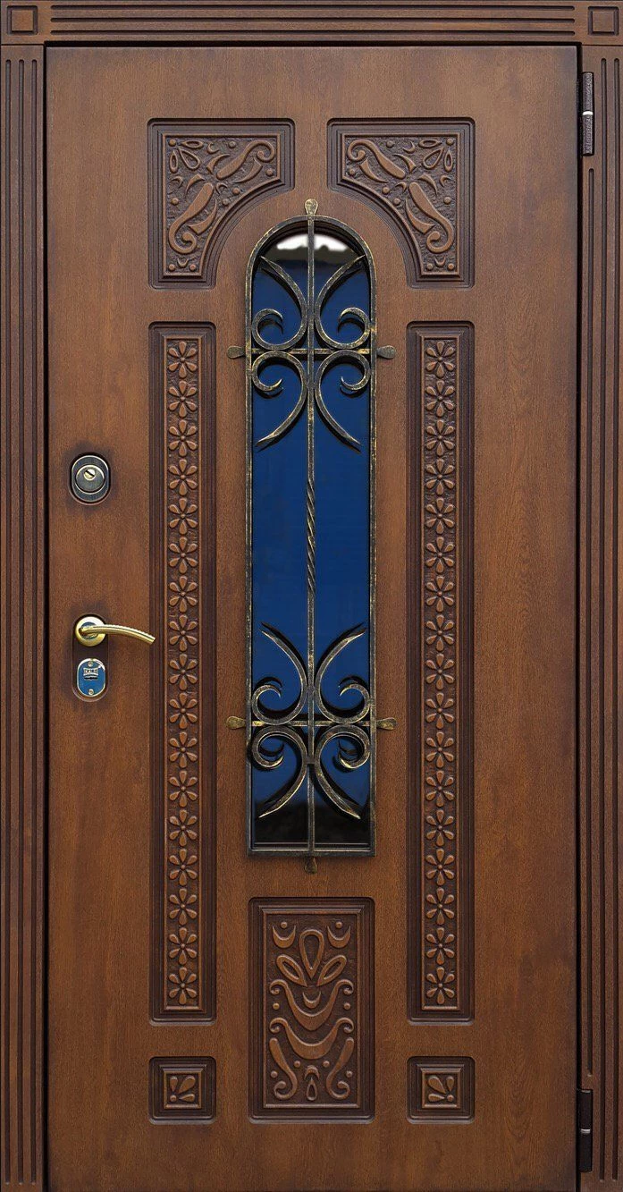 Входные двери в Полысаево с применением декора витражом изготавливаются из стального профиля, придающего прочность конструкции, а сама витражная вставка обладает высокой взломостойкостью, поскольку для витражных композиций используется специальное стекло, обработанное особым образом. Усилить надежность витражного элемента можно с помощью использования декоративных кованных решеток.