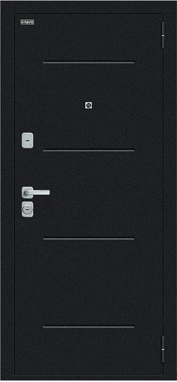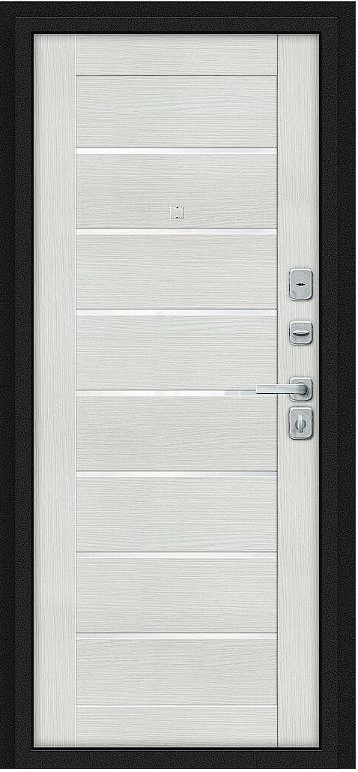 Надежная входная Дверь Браво Техно/BChrome Букле черное/Bianco Melinga премиум класса по цене 35 815 руб. Большая толщина стали защитит от проникновения в ваш дом, квартиру или коттедж. Используется очень качественная фурнитура: замки, цилиндры, ручки, защелки. Покрытие и отделка двери изготовлено под внимательным контролем производителя. Дверь имеет долгий срок службы и гарантию.